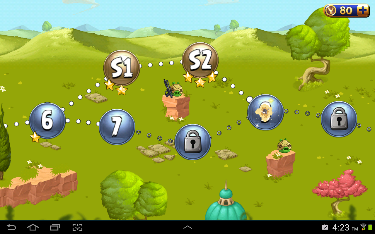First of all, this game is visually far more appealing than any previous Angry Birds game (and I have played them all—I’m mildly obsessed). This is saying quite a bit, because I found the Angry Birds Rio game to be bright and fun. The mapping sequences in between levels are now actually shown through animation each time the player completes a level, which makes it easier to feel a sense of accomplishment. In previous versions of the game, a player could work through an entire map of fifteen levels without realizing how far they had gotten.