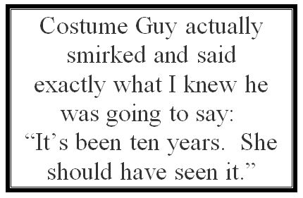 Then Costume Guy actually smirked and said exactly what I knew he was going to say: “It’s been ten years. She should have seen it.”